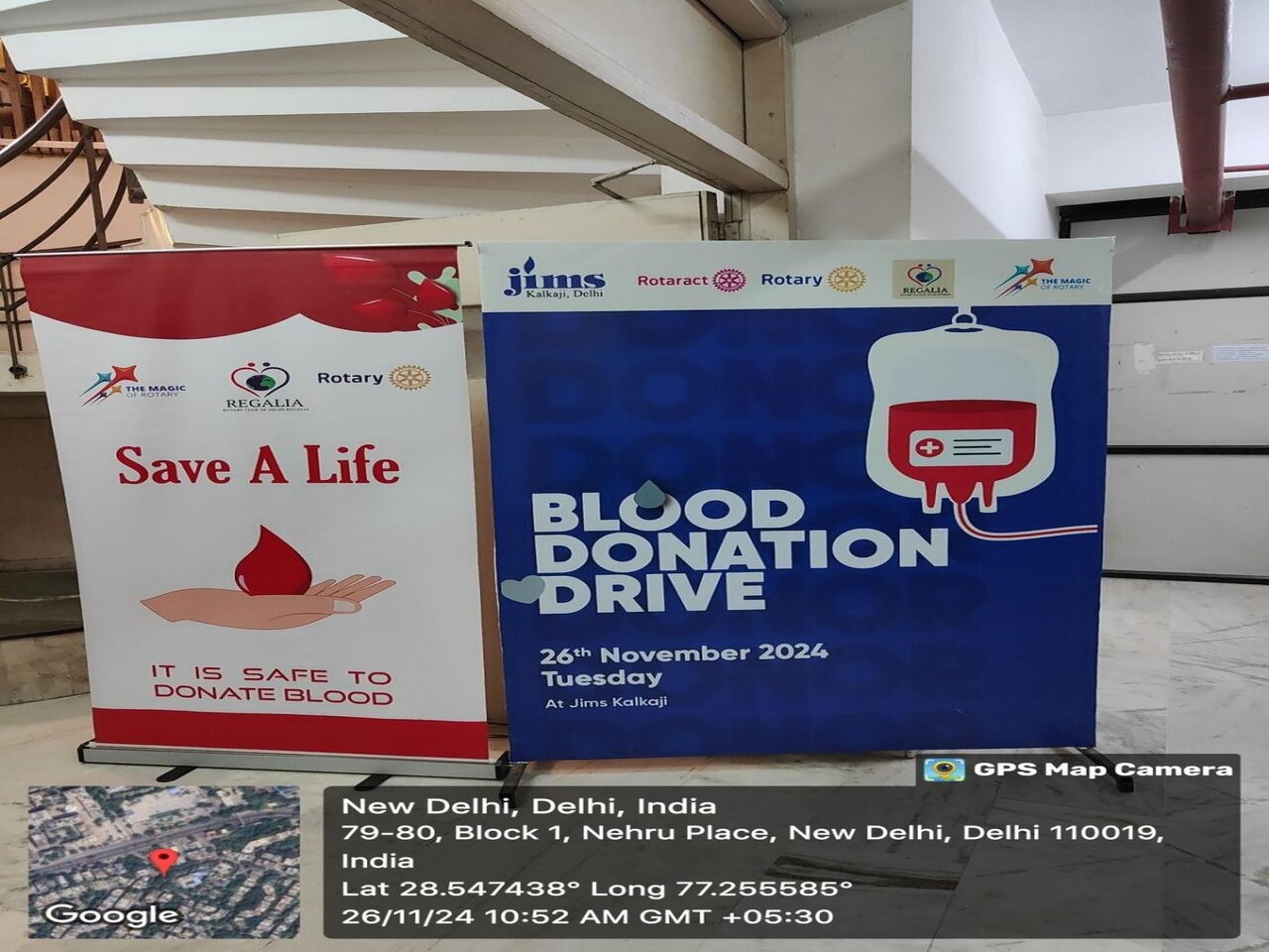 Blood Donation Drive was held on 26-11-2024.Prayaas The NSS club of JIMS Kalkaji organised A Blood Donation Camp in collaboration with the Rotaract Club of JIMS Kalkaji and Rotary Club of Delhi Regalia at JIMS Kalkaji Campus. The event saw an excellent response, with 51 units of blood collected. Donors were appreciated with certificates, fruits, juice, wallets, and memento cups. Conducted under the supervision of certified medical professionals, the camp adhered to strict hygiene protocols, successfully fostering community spirit and contributing to the noble cause of saving lives. The primary objective of the Blood Donation Camp was to encourage voluntary blood donation and create awareness about its significance in saving lives. The event aimed to provide a safe and efficient platform for donors to contribute to society while ensuring their well-being and comfort during the process .
