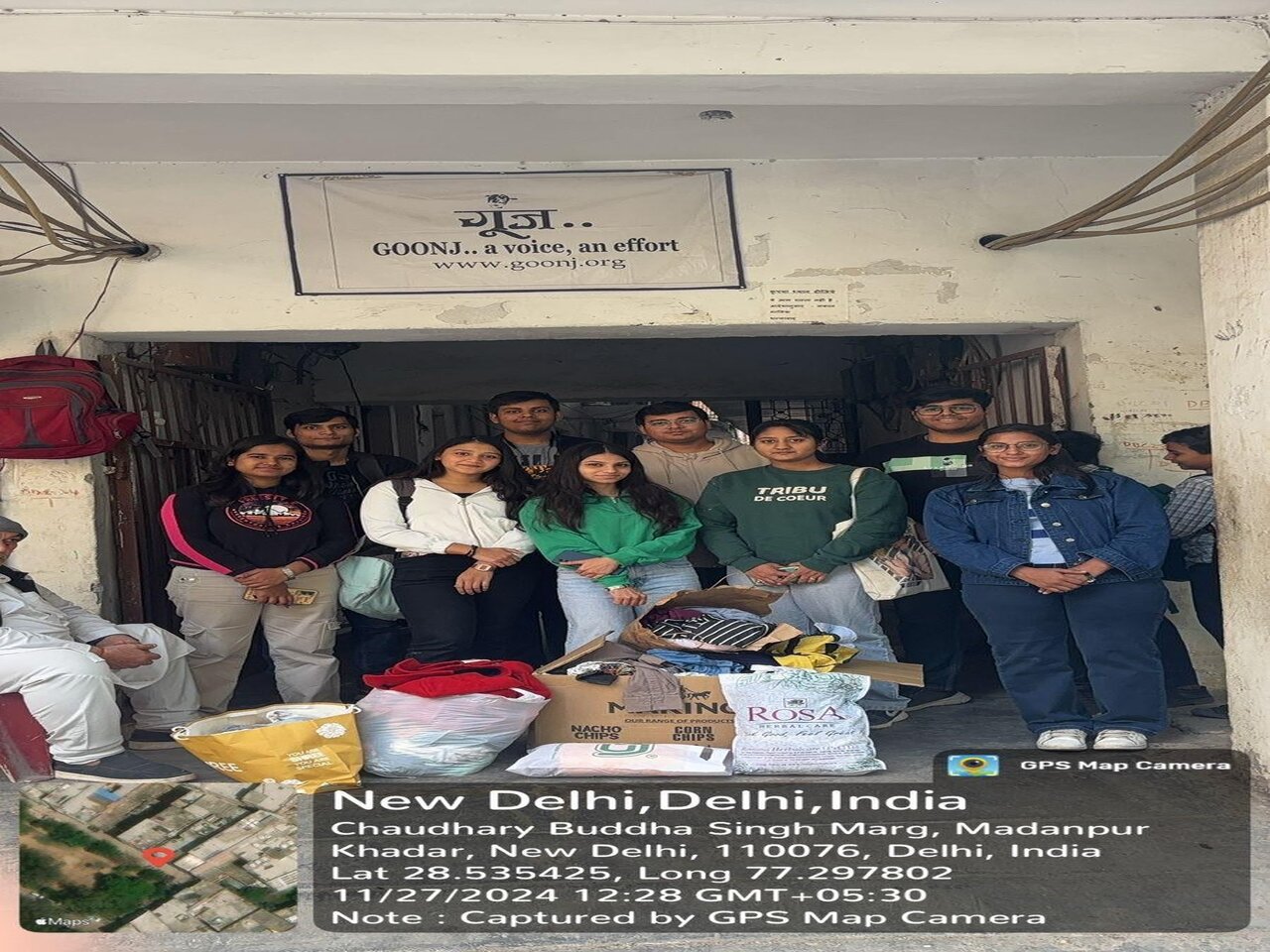 Clothes Donation Drive was held on 27-11-2024.Prayaas the NSS club of JIMS Kalkaji in collaboration with the Confederation of Indian Industry (CII) YUVA of Jims Kalkaji, organized a Clothes Donation Drive at Goonj. The initiative invited participants to contribute their gently used or new clothes to support those in need. The event provided a unique opportunity to explore the workings of Goonj, where attendees gained insight into how donations were repurposed to create meaningful impact. Additionally, an Awareness Session was held, during which participants learned about Goonj's innovative initiatives and its crucial role in addressing pressing societal challenges. The event successfully engaged everyone and contributed to this noble cause. The objective of clothes donation is to provide clothing to those in need, promote sustainability by reducing waste, engage communities in charitable acts, and support local charities or organizations in their efforts to help others.