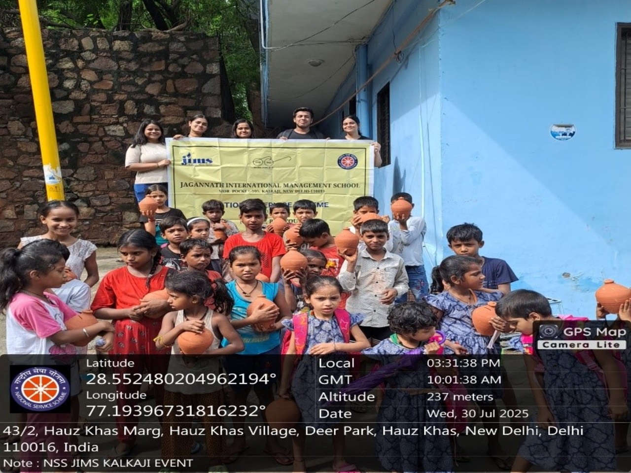 Prayaas, the NSS Club of JIMS Kalkaji, organized a community outreach activity at Hauz Khas Village in collaboration with CII YI YUVA JIMS Kalkaji on 30th July 2025. As part of this drive, volunteers distributed gullaks (piggy banks) to children in the area. The main aim of this event was to create awareness about the importance of saving money and developing smart money management habits from a young age. An interactive session was also conducted where children were encouraged to share their views and understand how small savings can lead to big changes. This small initiative left a big impact on young minds and promoted financial awareness at the grassroots level. The event helped children understand the basic concept of saving money and highlighted the importance of financial discipline in their daily lives. Volunteers enhanced their communication and leadership skills through community interaction, while the session encouraged a sense of social responsibility and active participation among all participants