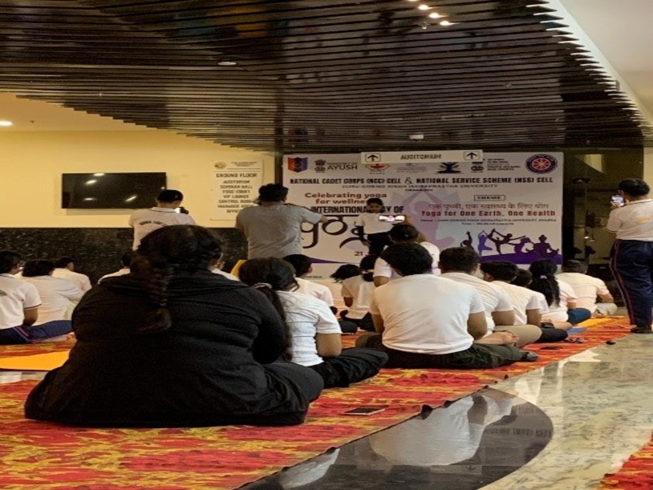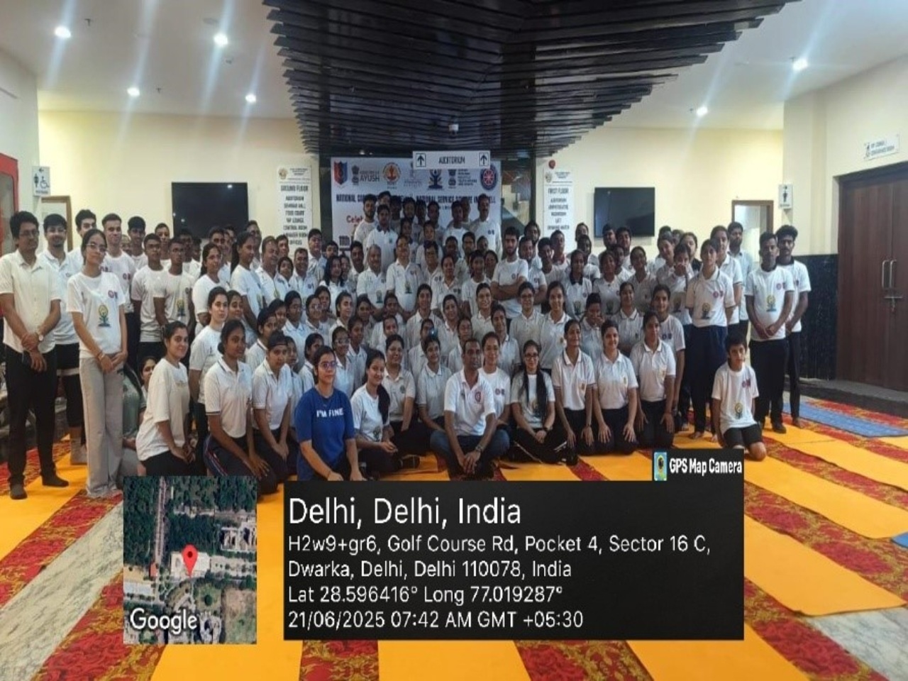 Prayaas, the NSS Club of JIMS Kalkaji, participated in the 11th International Day of Yoga Celebration at GGSIPU, Dwarka Campus on the occasion of International Yoga Day. The session commenced with a guided group yoga practice led by certified instructors, where volunteers were introduced to various asanas (postures), pranayama (breathing techniques), and meditation practices. Following the session, a short presentation was delivered to enlighten participants about the origin, history, and global significance of International Yoga Day, which is celebrated every year on 21st June as declared by the United Nations in 2014. Student volunteers later performed a series of yoga asanas as a demonstration, promoting body awareness, flexibility, and concentration. The event concluded with the distribution of specially designed Yoga Day t-shirts and refreshments to all participants as a token of appreciation for their active involvement. Volunteers gained practical knowledge of basic yoga techniques and breathing exercises and understood the cultural and global significance off yoga day. The event fostered a sense of discipline, inner balance, and community participation among volunteers and they experienced the mental and physical benefits of yoga, such as improved focus, flexibility, and stress relief.