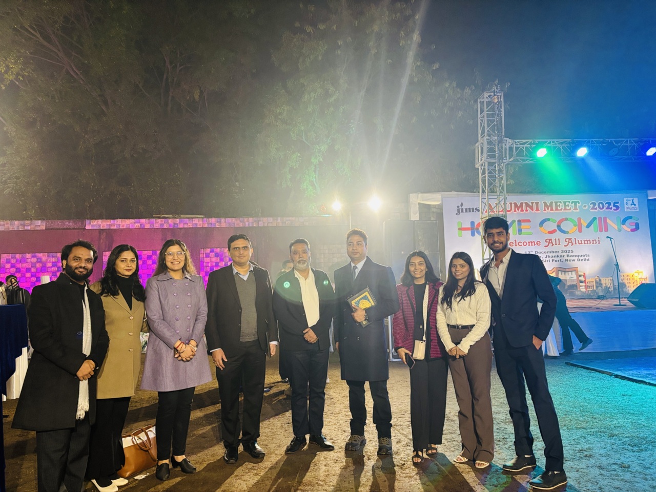 Jagannath International Management School (JIMS), Kalkaji successfully hosted its annual Alumni Meet (Homecoming 2025) on 13th December, 2025 held at the elegant Sunken Lawns, Asiad Banquets, bringing together alumni from various batches to celebrate shared memories, professional achievements, and enduring bonds with their alma mater. The event witnessed the presence of alumni who have excelled across corporate leadership, entrepreneurship, academia, and professional domains, creating a vibrant platform for networking and knowledge exchange with faculty members and current students.The evening was further enriched by a soulful Sufi music performancecreating an ambiance of harmony, nostalgia, and celebration. Addressing the gathering, Dr. Amit Gupta(Chairman JIMS) emphasized JIMS Kalkaji’s focus on strengthening alumni network, nurturing industry-ready professionalsand innovative entrepreneurs. The evening concluded with a vote of thanks followed by networking dinner in a warm and celebratory atmosphere.
