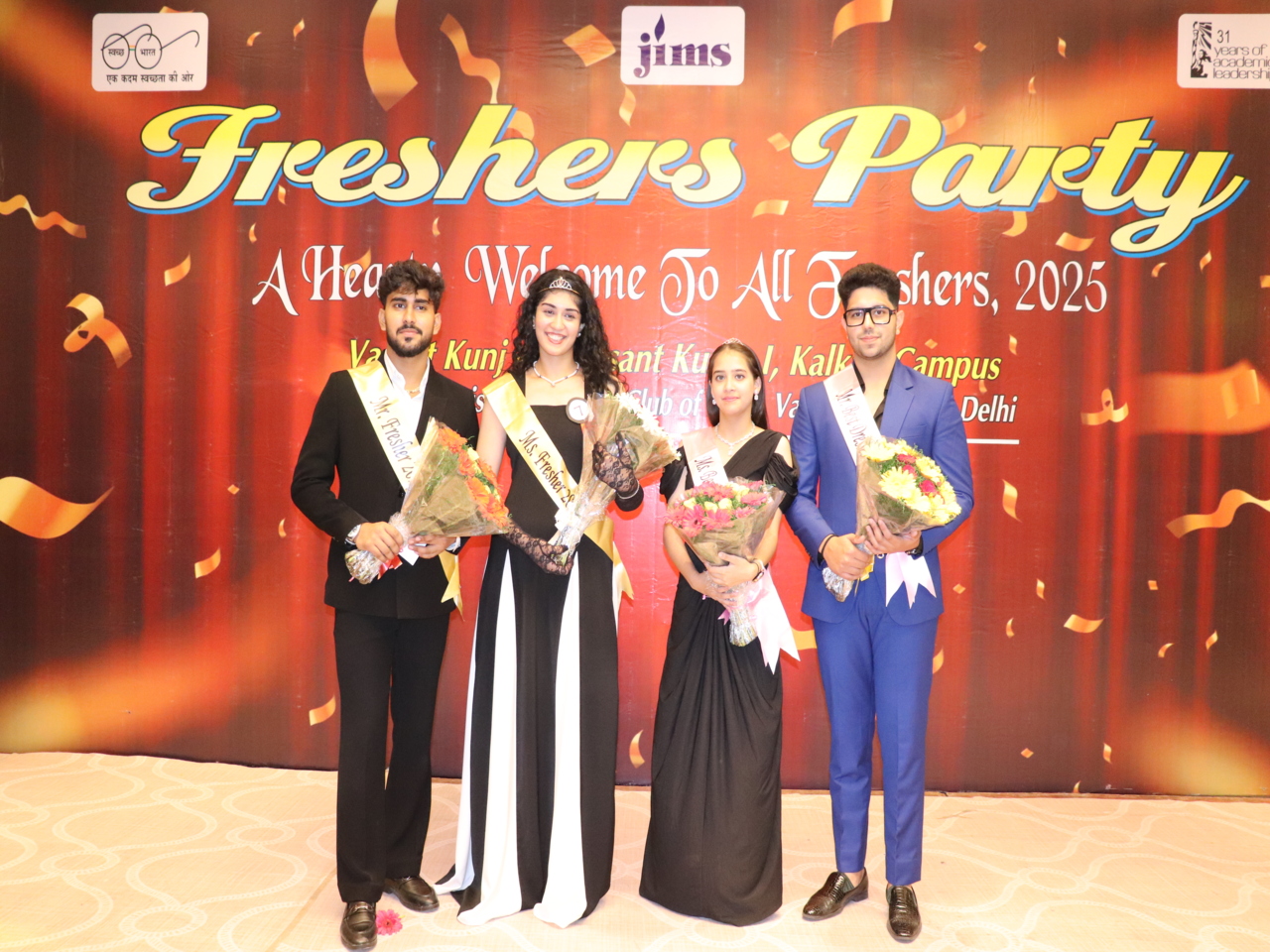 From B.Com.(hons.) Harsh Sharma bagged the title of “Mr. JIMS” and Durdana Naseerwas crowned as “Ms. JIMS”. Gifts were also given for categories like Mr. & Ms. Best Dressed. The party ended with refreshments and drinks