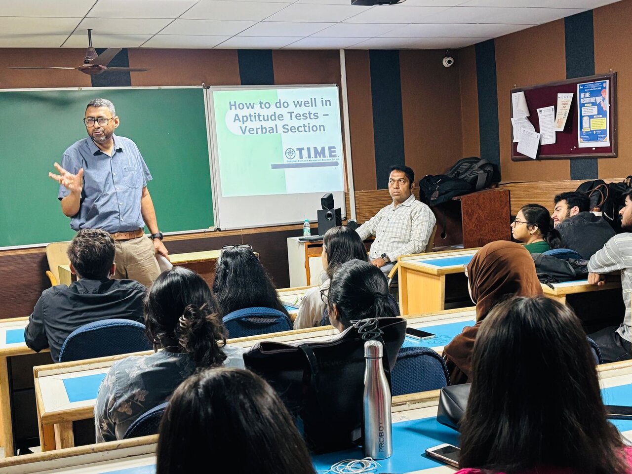 T.I.M.E mentor Mr. Jayant Saha conducted session on tips and tricks to clear aptitude test, a skill essential to ace competitive exams.