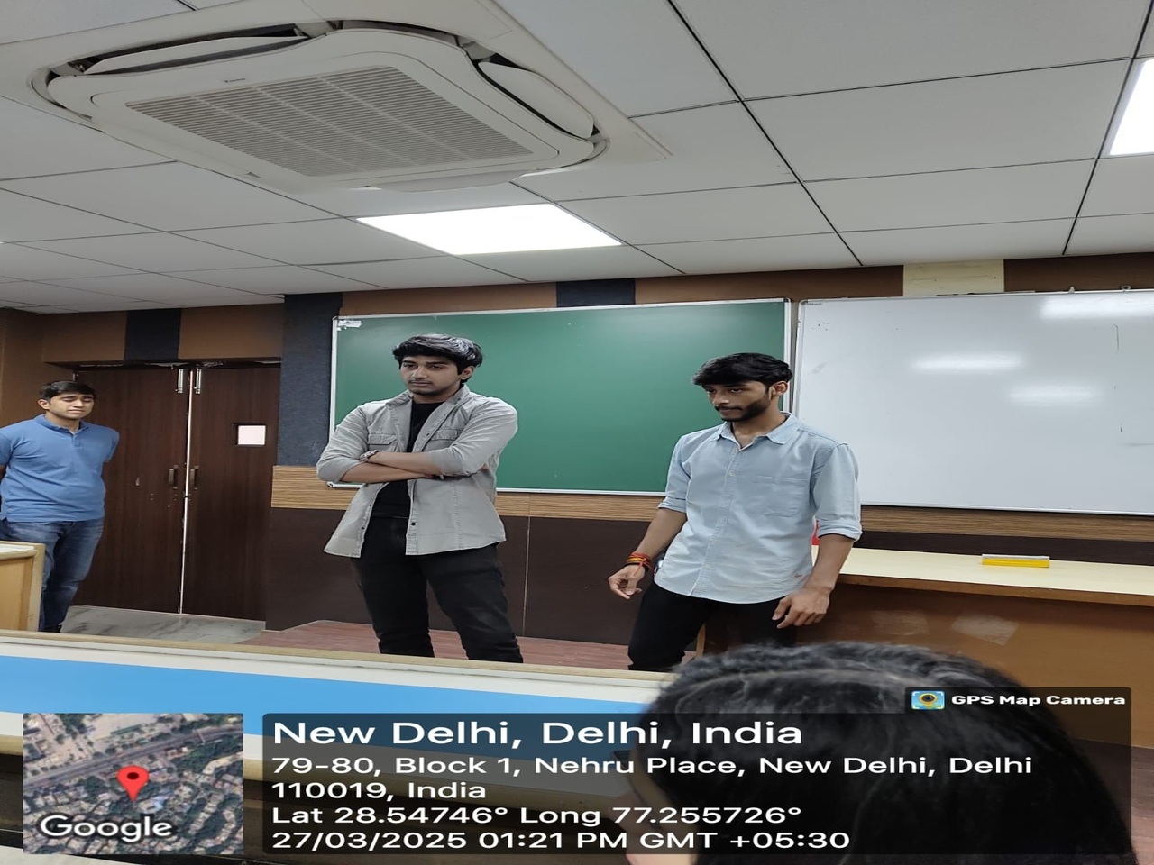 EXTEMPORE (held on 08/11/2024) ,On 8th November 2024, the Debating Club of JIMS, Kalkaji organised a EXTEMPORE activity . The activity commenced with a brief introduction outlining the purpose and format of the extempore. - Topics will be given on the spot. - Everybody will have to speak for 1-2 mins. - Each participant will have a brief preparation time (5-10 mins) before speaking. - Topics will cover a range of themes, ensuring both challenge and variety. Participants were given a limited time to prepare for their topic before presenting them to the audience. After speaking a rebuttal round was conducted where questions were asked by the other participant to the speaker. Emphasis was placed on clarity of expression, confidence, and the ability to engage and persuade listeners effectively.
