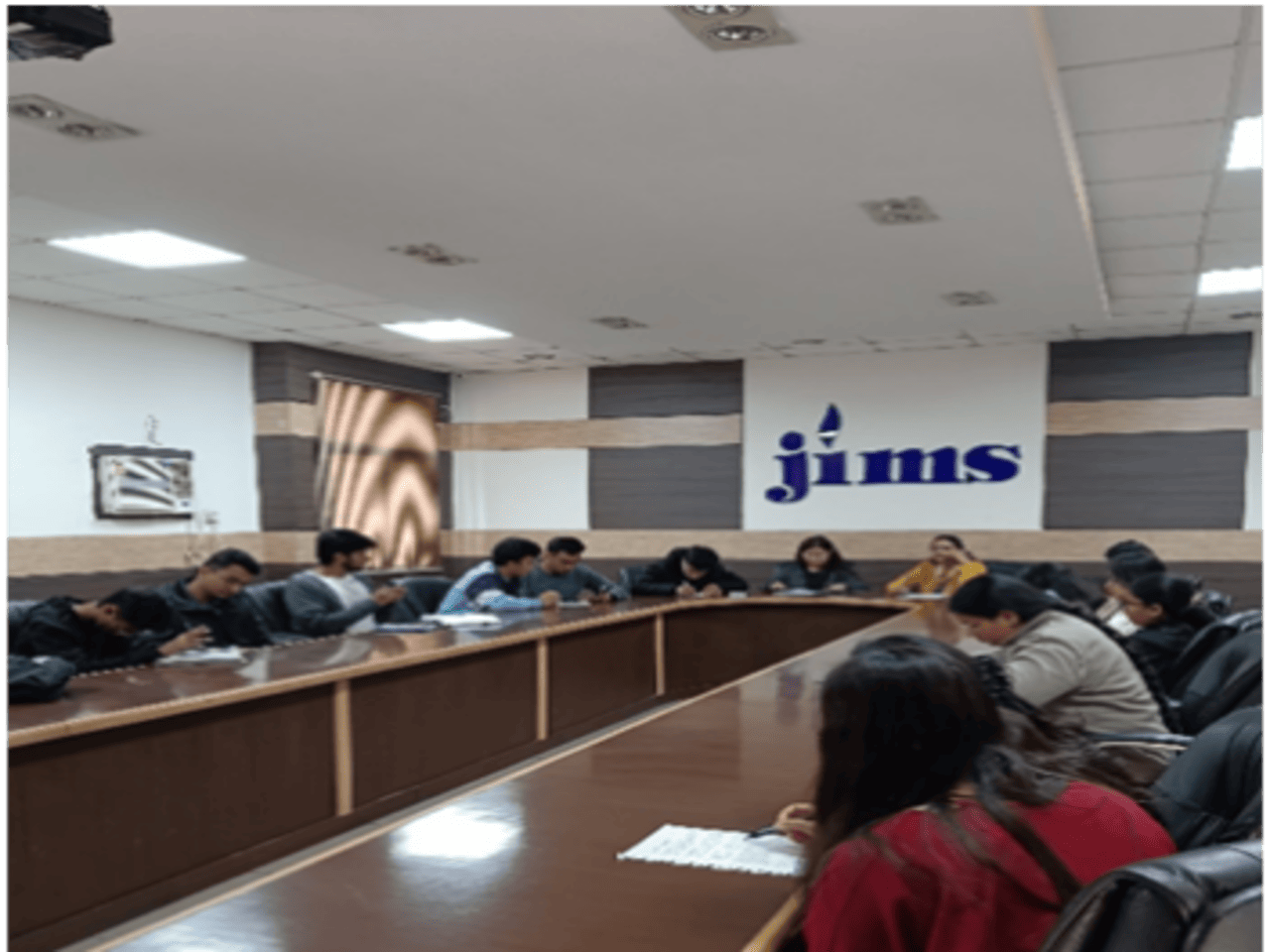 Group Discussion - Students Suicide - The Root Cause (held on 06/05/2022) ,On 6th May 2022, the Debating Club of JIMS, Kalkaji organised a group discussion session on the topic “Students Suicide – The root cause’.The students came together for a healthy discussion. Many arguments were presented for this topic. The main aim was to find out the root cause and solutions for students suicides.
