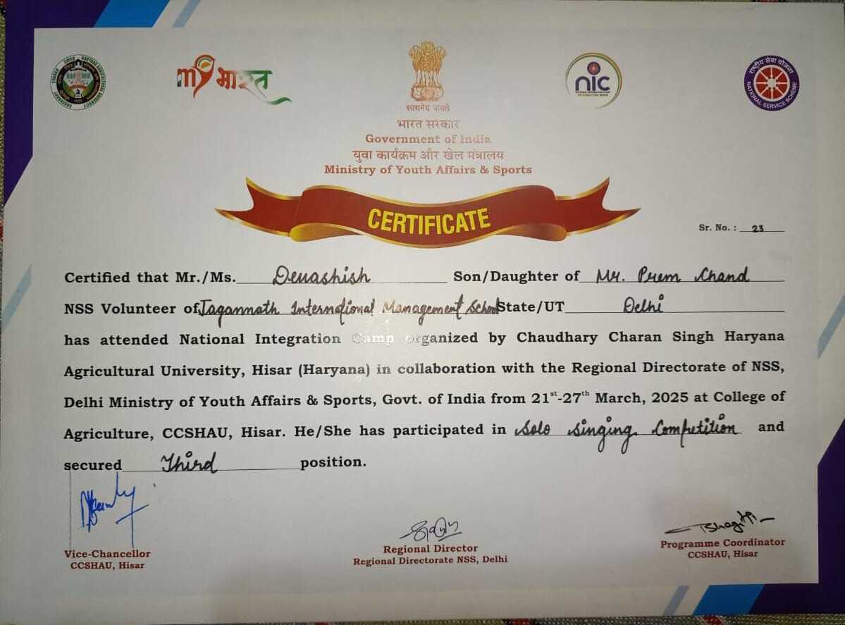 - Ministry Of Youth Affairs & Sports Appreciation Letter