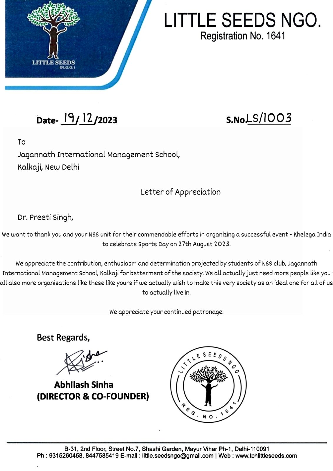 - LITTLE SEEDS NGO Appreciation Letter - DECEMBER 2023