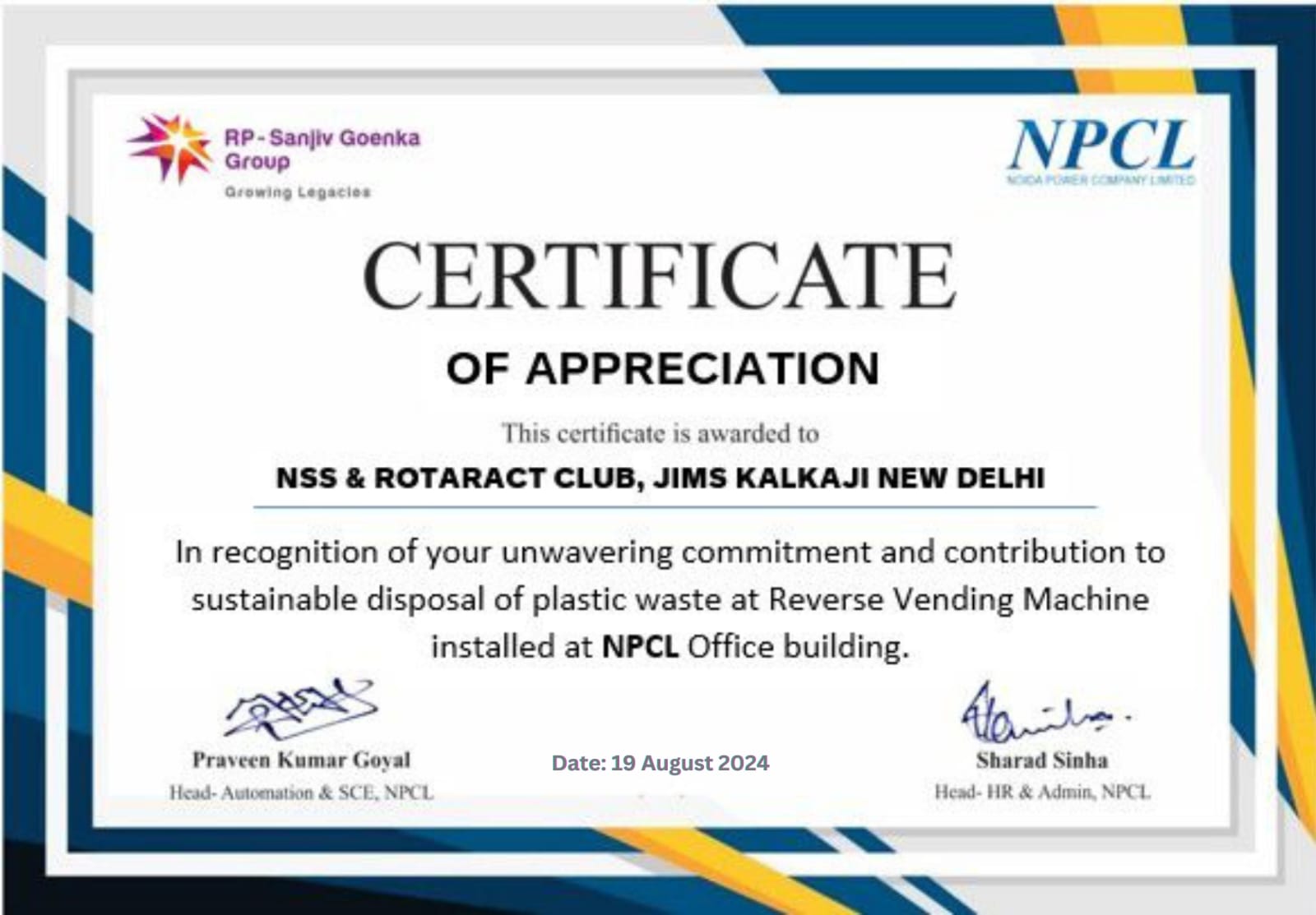 AWARDS/APPRECIATION RECEIVED FOR NSS ACTIVITIES