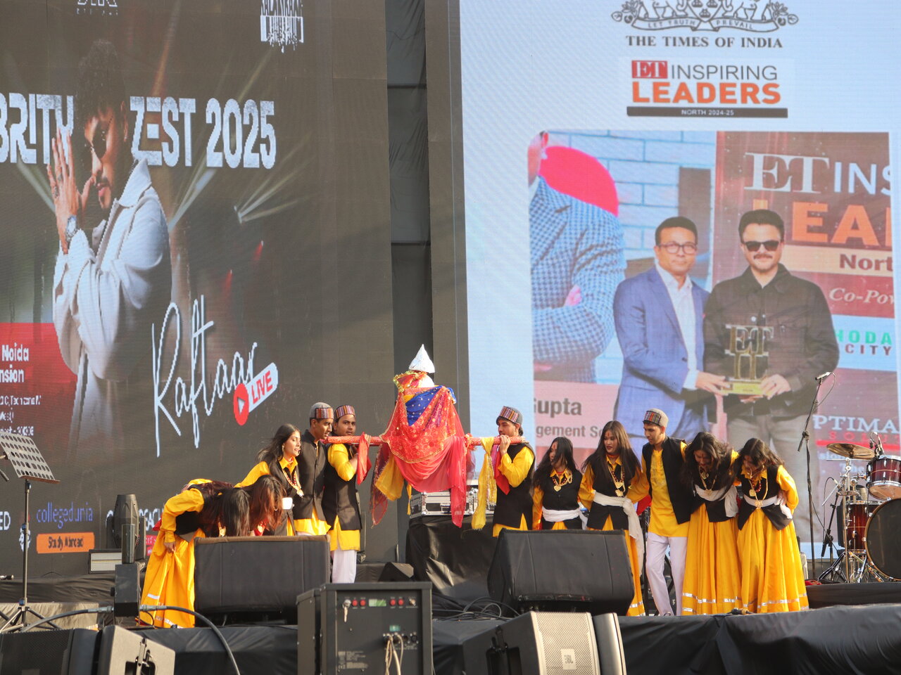JIMS Group of Institutions organized Celebrity Nite 2025 proudly hosted its much-anticipated annual cultural fest, Zest 2025, on February 21st and 22nd, 2025. As the competitions concluded, the excitement reached its peak with a sensational Starnite. The immensely talented Aaryan Banthia set the stage on fire with his dynamic performance, preparing the crowd for the most awaited moment of the night. The energy soared as Raftaar, the sensational rapper, took center stage, delivering an electrifying performance that left the audience spellbound. His powerful beats and engaging stage presence made the night an unforgettable celebration of music and passion. In a heartwarming moment, Raftaar extended his support to a team that had eagerly prepared for the dance competition but, due to time constraints, was unable to perform. Recognizing their enthusiasm and dedication, he invited them onto the stage, sharing the spotlight with them as a gesture of encouragement and appreciation. This unexpected yet touching moment resonated deeply with the audience, reinforcing the spirit of inclusivity and celebration that Zest 2025 stood for. The entire venue erupted with cheers and applause as students immersed themselves in the exhilarating atmosphere, making it a night to remember.