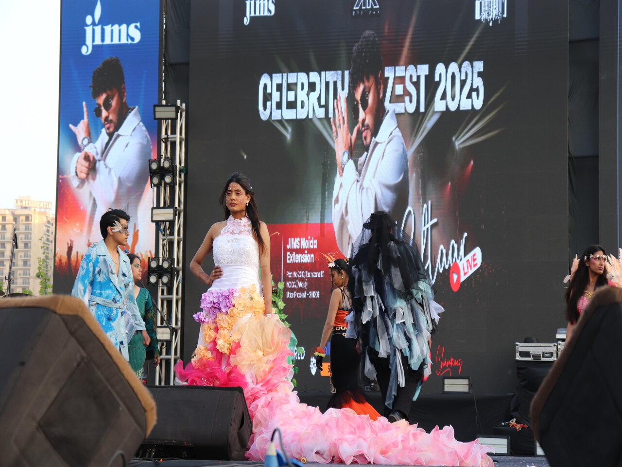 JIMS Group of Institutions organized Celebrity Nite 2025 proudly hosted its much-anticipated annual cultural fest, Zest 2025, on February 21st and 22nd, 2025. The first and second day of Zest 2025 was filled with excitement as students participated in a variety of competitions, ranging from intellectual challenges to artistic showcases. Events such as AD-MAD Show, RJ Hunt, Extempore (Hindi & English), Floor Art, Painting Competition, Creative Writing, Face Painting, Mono Acting, and Theme Play, Solo Dance, Duet Dance, Group Dance, Folk Dance, and the much-awaited Fashion Show. saw enthusiastic participation from all campuses. The competitive spirit was high, and students impressed the judges with their originality and skill. Zest 2025 was more than just a cultural fest; it was a celebration of art, expression, and unity. It provided students with an opportunity to explore their creative potential, compete with their peers, and experience the joy of performance. The event showcased the spirit of JIMS, where learning extends beyond classrooms into real-world experiences that shape future leaders.