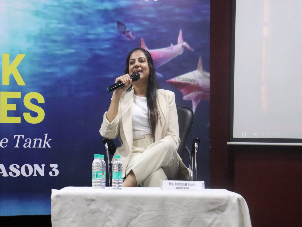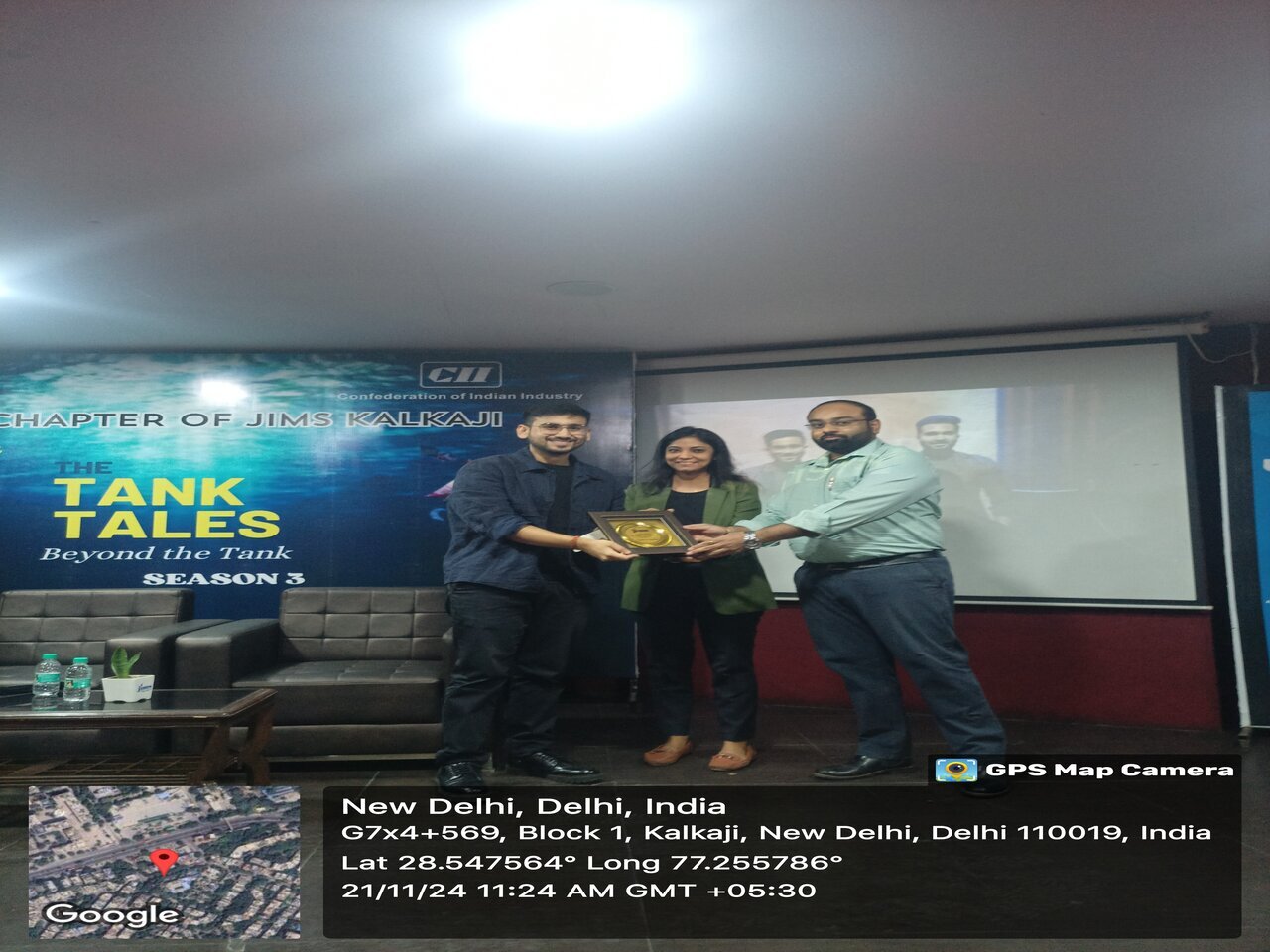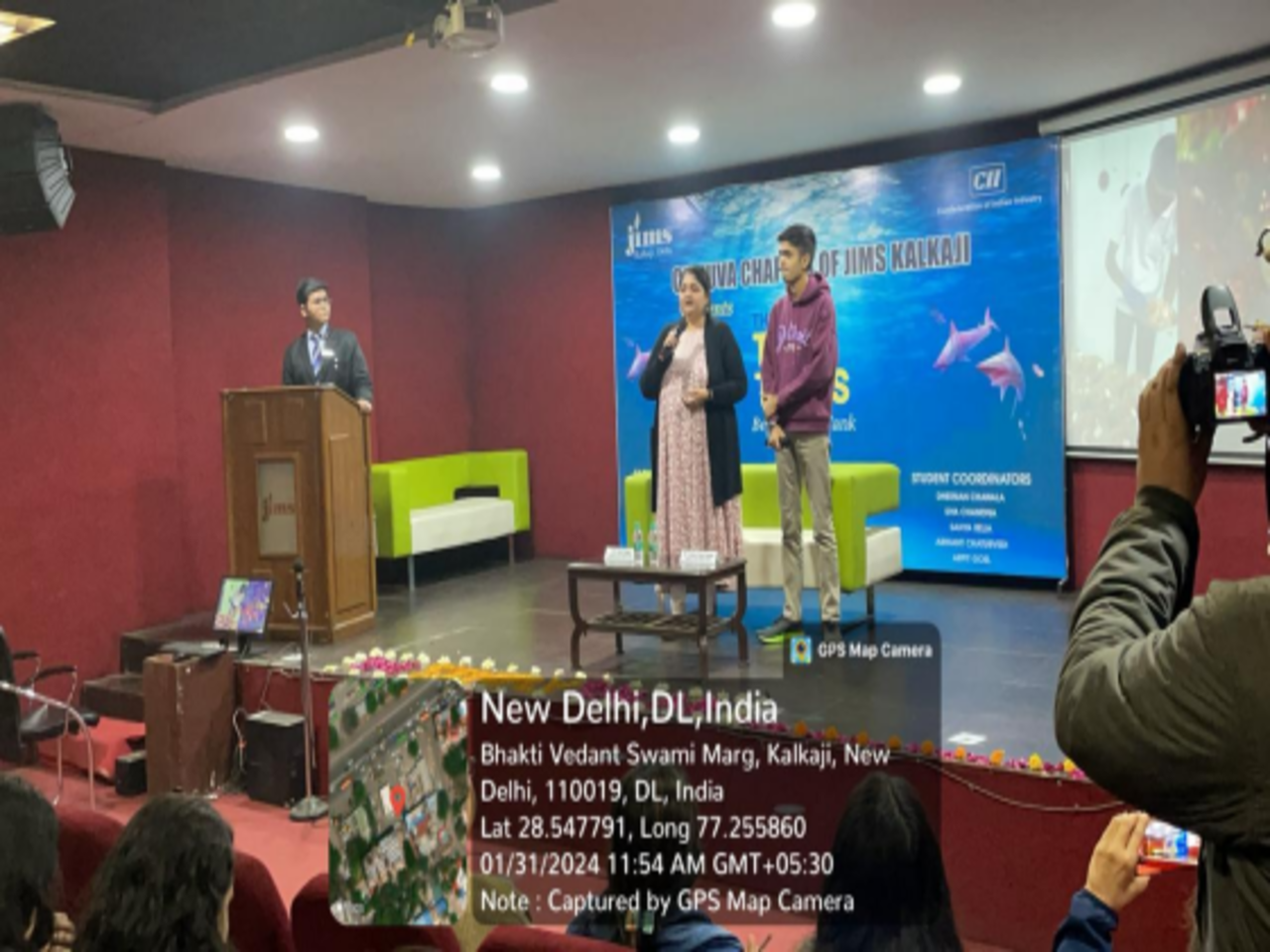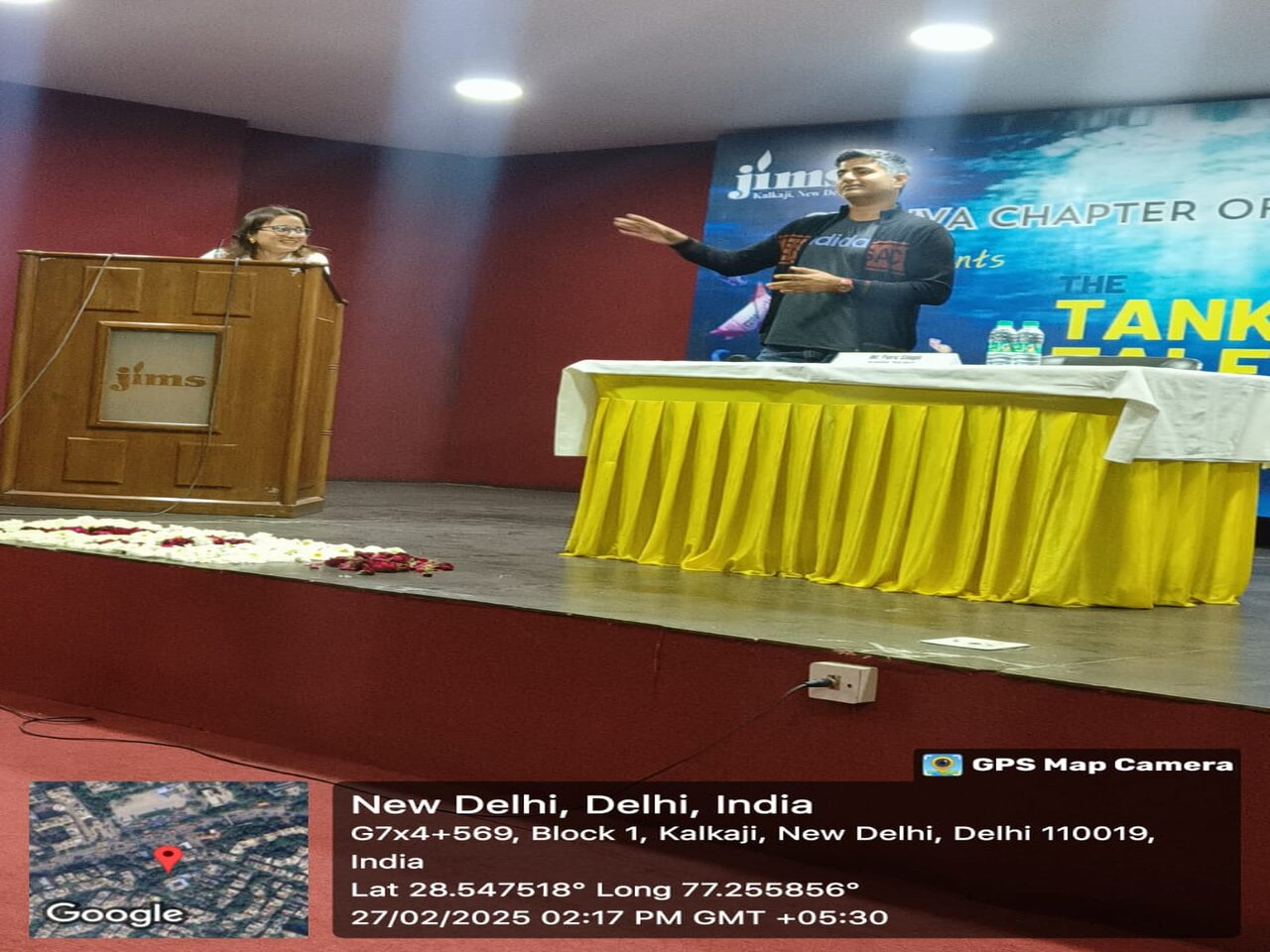 The event was held on 31st January 2024, at the auditorium of JIMS, KALKAJI from 11am onwards. The Event was started with diya lightening and further continued with a welcome skit which was performed by the team AWAAZ, drama society of JIMS Kalkaji. The speakers Ms. Payal Pathak and Mr Soham Payal Pathak explained how they initiated this startup and her journey to the Shark Tank India. They gave us an insight of how the shark tank helped them to boost her business. They shared the challenges she faced and how she overcame. Then we played a games called “This or That” to know them personally. Afterwards our director sir felicitated them with token of appreciation and love.