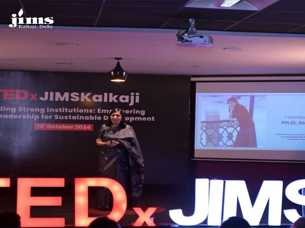 TEDx Talks were held at the JIMS Auditorium, commencing at 12 PM, and brought together five distinguished speakers from various fields on October 18, 2024, under the theme “Building Strong Institutions: Empowering Youth Leadership for Sustainable Development.” Each speaker provided insightful perspectives on leadership, innovation, and sustainability, emphasizing the critical role of youth in shaping the future. The details of the speakers are as follows- 1. Dr. Sudipti Arora, Research Scientist & Asst. Director, Dr. B. Lal Institute of Biotechnology, Founder Prakrit Foundation 2. Mr. Rajneesh Tomar, Global HR Leader 3. Mr. Akshay Verma, Co-founder of FITPASS 4. Ms. Kanika Aggarwal, Founder & CEO of Mind Peers a mental wellbeing platform 5.Mr. Nishant Gupta, Student JIMS Kalkaji