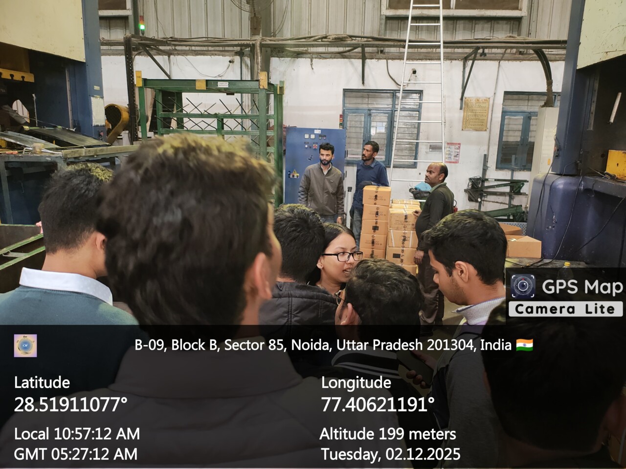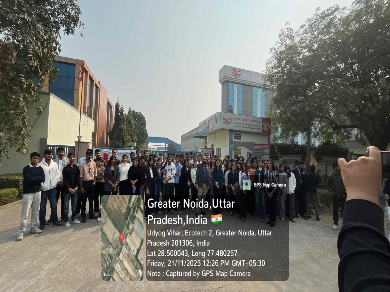 On 21st November 2025, JIMS Kalkaji conducted an industrial visit to Anmol Industries Limited, Greater Noida, for the B.COM (H) First Semester Morning Batch and the BBA First Semester Evening Batch. The buses departed from the campus at 9:30 AM, accompanied by Mr. Kartik Sir and Ms. Dolly Sharma. Upon arrival at the industrial unit at around 10:00 AM, the students were given instructions regarding safety protocols and conduct to be followed during the visit. A company representative provided a brief overview of the organization, including its inception, product ranges, distribution network, and the quality standards maintained by Anmol Industries Limited.The visit concluded around 01:00 PM, and the group departed from the venue at around 01:15 PM. The overall experience was enriching and offered valuable industrial knowledge to the students.