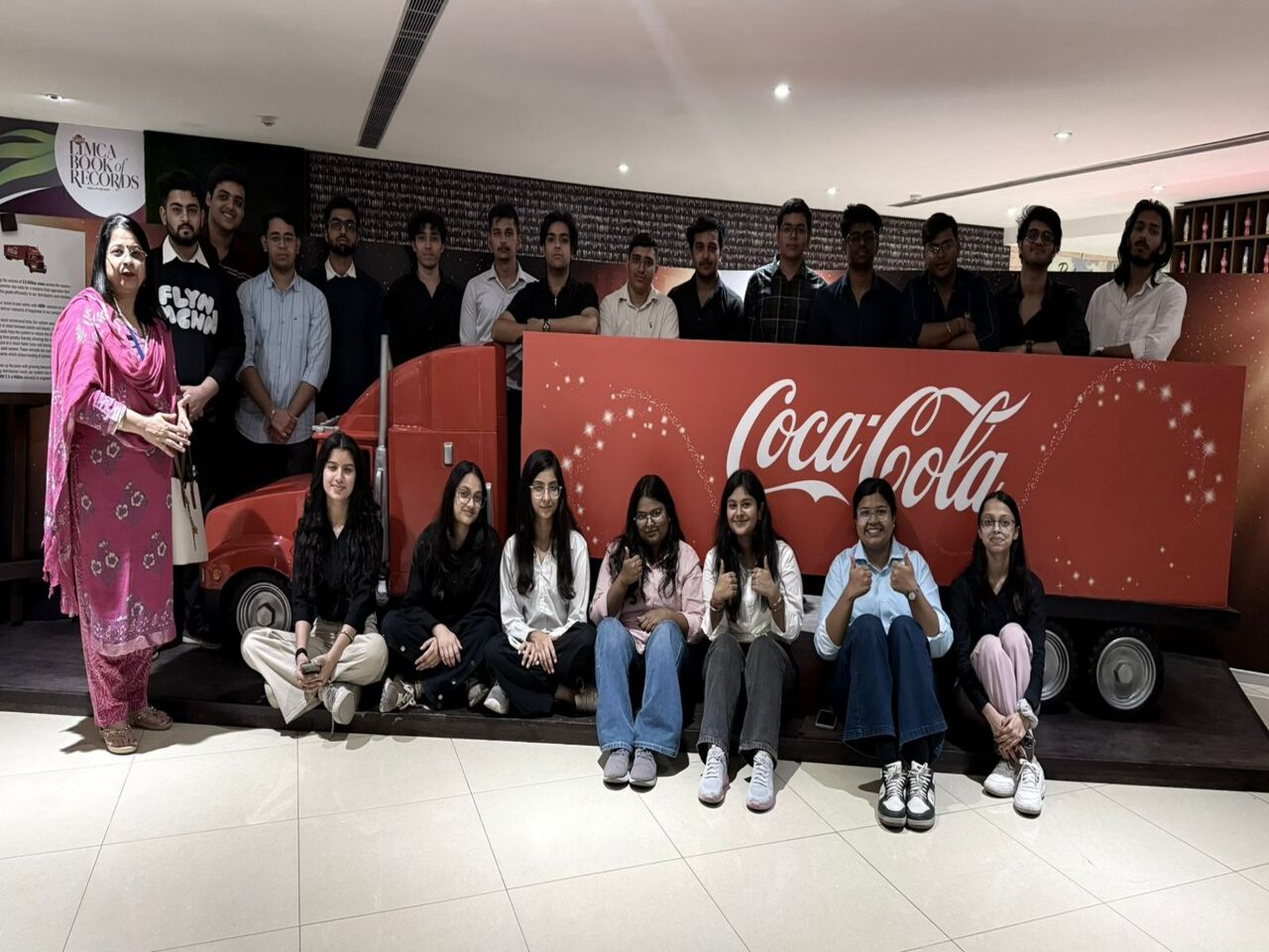 On 30 November, 2023 JIMS KALKAJI has conducted an Industrial visit to coca-cola happiness factory moon beverage Ltd,, Greater Noida, UP. The bus left the campus by 8:45 am with the total of 43 students and reached the plant by 10:00 am. After giving brief of the rules and guidelines to be followed, we were taken for the plant visit with our respective plant guide. An introductory session was conducted by Miss Richa gupta who provided us all the useful information such as: