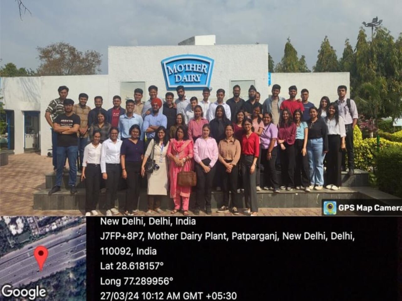 On 27 March, 2024 JIMS KALKAJI has conducted an Industrial visit to Mother Dairy, Patparganj, New Delhi 110092. The bus left the campus by 8:35 am with the total of 45 students and reached the plant by 9:15 am. After giving brief of the rules and guidelines to be followed, we were taken for the plant visit with our respective plant guide. The session was taken by Ms. Neha where she explained the functioning of Mother Dairy. The students were shown video and a presentation was given about the history and functions of Mother Dairy. Students were provided insights about its various processes and were also taken around the plant. The students were also shown the Trophy Room which encased the various accolades and awards that Mother Dairy earned over decades. Post visit the students were treated with a refreshing glass of Vanilla flavoured mother dairy milk and Ice creams. It was a nice and interactive session from which the students gained a lot. Total 45 students visited the plant.