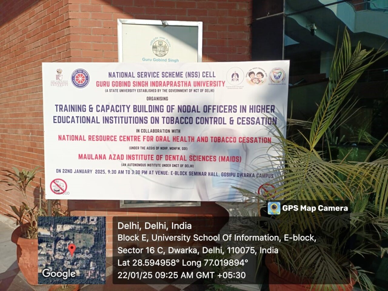 Mr. Kartik Dayal, Program Officer of NSS Club of JIMS Kalkaji, attended the "Training and Capacity Building of Nodal Officers in Higher Educational Institutions on Tobacco Control and Cessation" organized by the NSS Cell of GGSIPU in collaboration with the National Resource Centre for Oral Health and Tobacco Cessation and Maulana Azad Institute of Dental Sciences on 22nd January 2025. The event was held at GGSIPU's Dwarka, focusing on strategies for tobacco control and cessation. The session will focus on enhancing their skills to identify and address tobacco-related issues among students, faculty, and staff while promoting awareness and establishing robust support systems for tobacco cessation within their institutions.