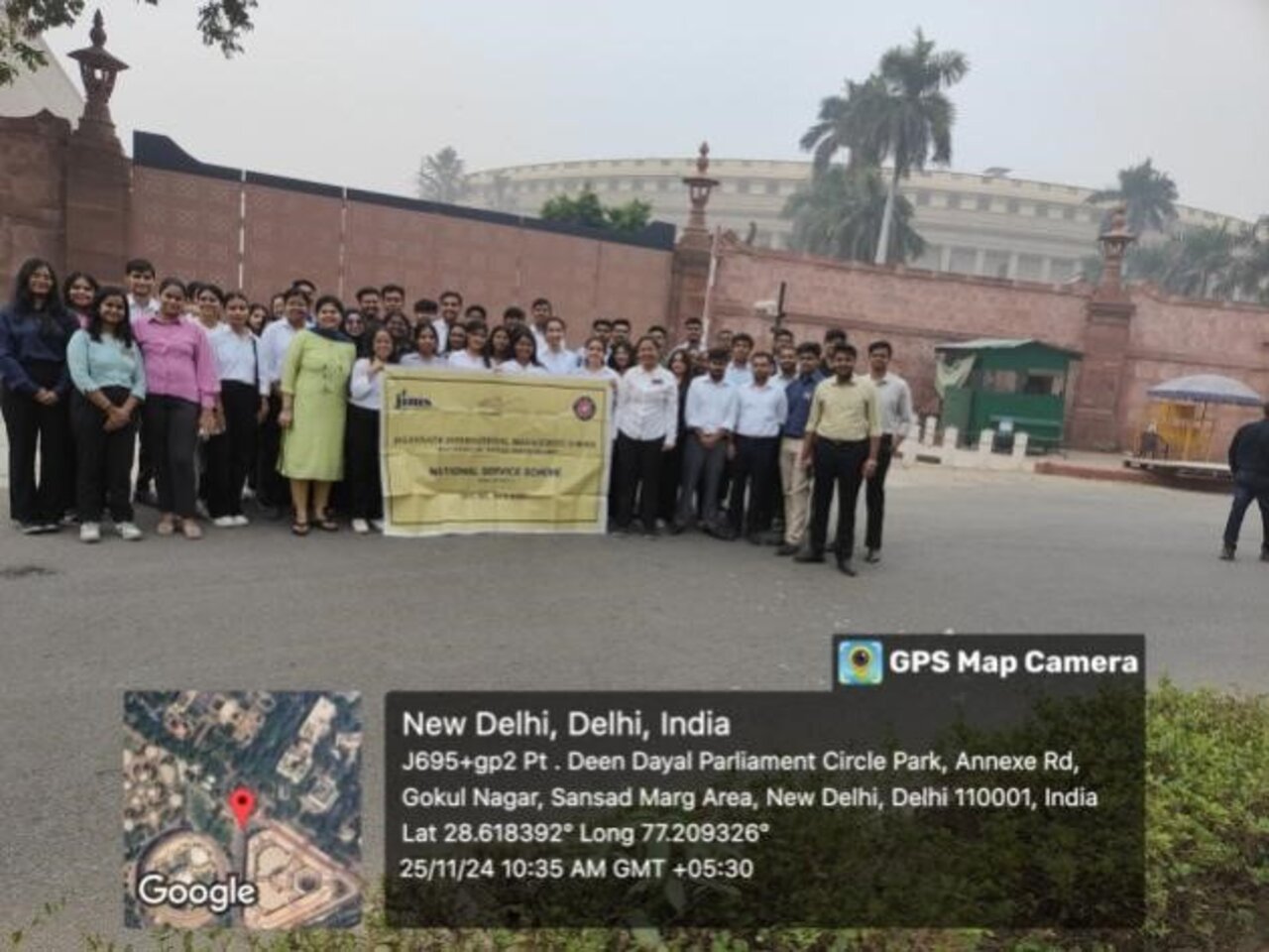 Parliament visit was held on 25-11-2024.Prayaas, the NSS club of JIMS Kalkaji, had organized an insightful visit to the Indian Parliament celebrating the occasion of Constitution Day of India, offering students a unique opportunity to experience the epicenter of India's democratic framework. This educational excursion provided participants with an in-depth understanding of the parliamentary proceedings and the dynamic functioning of both the Lok Sabha and Rajya Sabha. During the visit, students explored key areas of the Parliament complex, including the chambers of both Houses, and observed firsthand the meticulous process of deliberation and decision-making. This rare exposure offered them a deeper appreciation of the pivotal role Parliament plays in shaping the nation. The visit aimed to provide participants with a firsthand understanding of the legislative process and the functioning of both Houses of Parliament. It sought to enhance knowledge about the stages of lawmaking, the importance of parliamentary debates, and to foster civic engagement by highlighting the significance of democracy in nation-building.