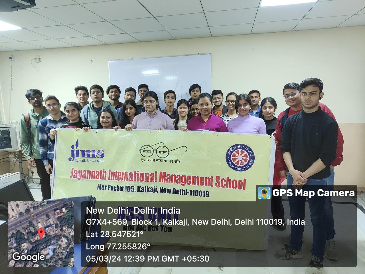 Prayaas- the NSS Club of JIMS Kalkaji, organized a two-day cleanliness campaign named “Mission Swachhata: Act, Create, Commit” as part of Swachhata Pakhwada on 14-15 September 2025. On the first day, a cleanliness drive was held in collaboration with Selfless Sewa NGO near Dr. B. R. Ambedkar School of Specialised Excellence, Kalkaji, to promote hygiene and community awareness. NSS volunteers actively participated in cleaning the surroundings and encouraging residents to adopt hygienic practices, emphasizing the importance of collective responsibility in maintaining cleanliness. On the second day, a Swachhata Pledge was administered in classes to remind students of their duty towards a clean environment. A handmade poster-making competition was also organized, and the posters were displayed across the campus to inspire others and spread the message of Swachh Bharat. The campaign effectively combined action and awareness, fostering a sense of responsibility, teamwork, and environmental consciousness among students while reinforcing their commitment to the ideals of the Swachh Bharat Abhiyan.