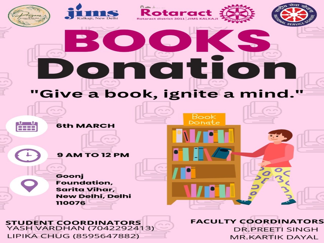 Prayaas the NSS club of JIMS Kalkaji, had organized a Books Donation Drive on 14 February 2025 in collaboration with Goonj Foundation at their Sarita Vihar centre. During the visit, volunteers took a tour of the Goonj Foundation and gained insight into their working and initiatives. A total of 251 books were donated during the drive. These books, ranging from educational textbooks to general reading materials, are intended to support various community outreach programs that Goonj runs, particularly in rural and marginalized areas. The event concluded with the distribution of books and celebrating the student’s creativity and enthusiasm. This thoughtful gesture made the day even more memorable and impactful for everyone involved. Volunteers gained a deeper understanding of the challenges faced by communities in accessing quality education, especially in remote and underserved areas. The books donated will be distributed by Goonj Foundation to schools, libraries, and individuals who lack access to educational resources.