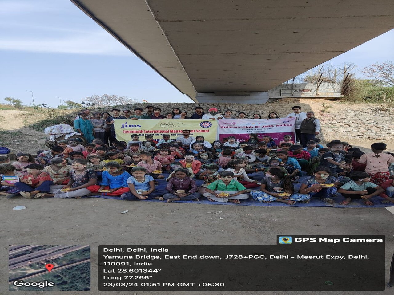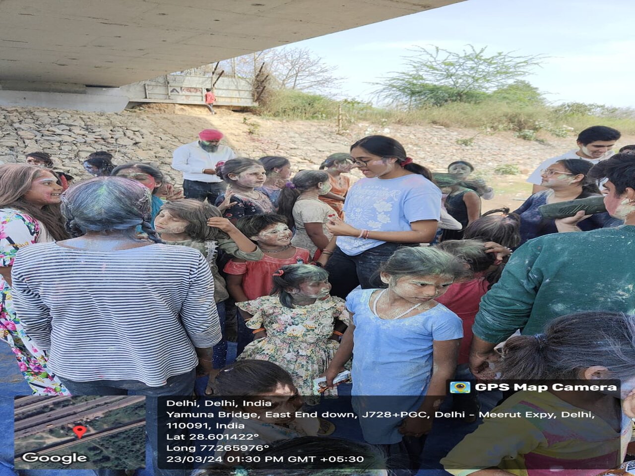 Prayaas the NSS club of JIMS Kalkaji, in collaboration with the Lalmani Foundation, organized Rang-e-Bahar 2.0: Holi ke Rang, Bachpan ke Sang celebrating the occasion of Holi at Yamuna Khadar, Mayur Vihar Phase 1 on 12 March 2025. The volunteers played a vital role in making the event a success. They actively participated in creating a joyful atmosphere by engaging with the children and playing with vibrant colors, spreading cheer and excitement. Volunteers distributed Gulal packets, sweets, and snacks to 70+ children, ensuring everyone had a memorable experience. They also handed out water guns, encouraging the children to enjoy the fun and playful side of Holi. Additionally, volunteers helped in maintaining a safe and organized environment, making sure the event ran smoothly and that all participants were comfortable and engaged throughout the celebration.