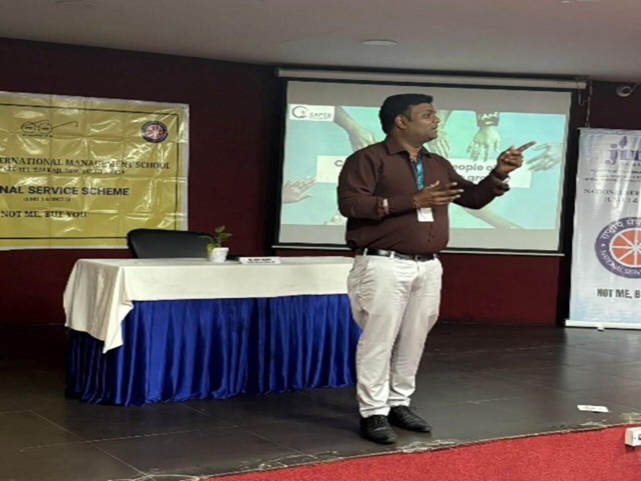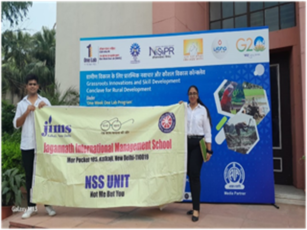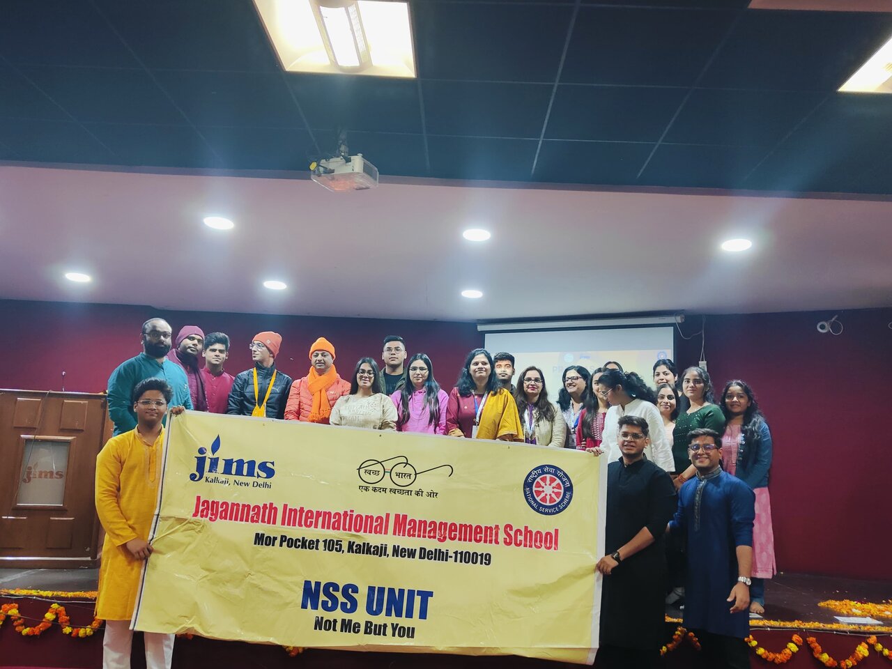 Prayaas the NSS club of JIMS Kalkaji, had participated as volunteers in the National Youth Festival 2025, celebrated as the "Viksit Bharat Young Leaders Dialogue," which was held at Bharat Mandapam, New Delhi, to commemorate Swami Vivekananda's 162nd birth anniversary on 10-12 January 2025. The festival aimed to engage youth in nation-building through innovation and dialogue while promoting cultural integration. NSS volunteers played a pivotal role in managing the event, having undergone extensive training in event management, communication skills, and cultural sensitivity prior to the festival. The event included diverse activities such as debate competitions on national development, cultural performances showcasing India’s rich heritage, and innovation challenges addressing societal issues. Key highlights included the inaugural session by Union Minister Dr. Mansukh Mandaviya, cultural showcases under the theme "Colours of Viksit Bharat," and the grand finale, where Prime Minister Narendra Modi paid tribute to Swami Vivekananda, interacted with competition winners who presented their ideas, and distributed prizes. Volunteers gained experience in managing large-scale events, coordinating between different departments, and ensuring smooth flow of activities. Interaction with participants, dignitaries, and attendees honed their interpersonal and professional communication skills.