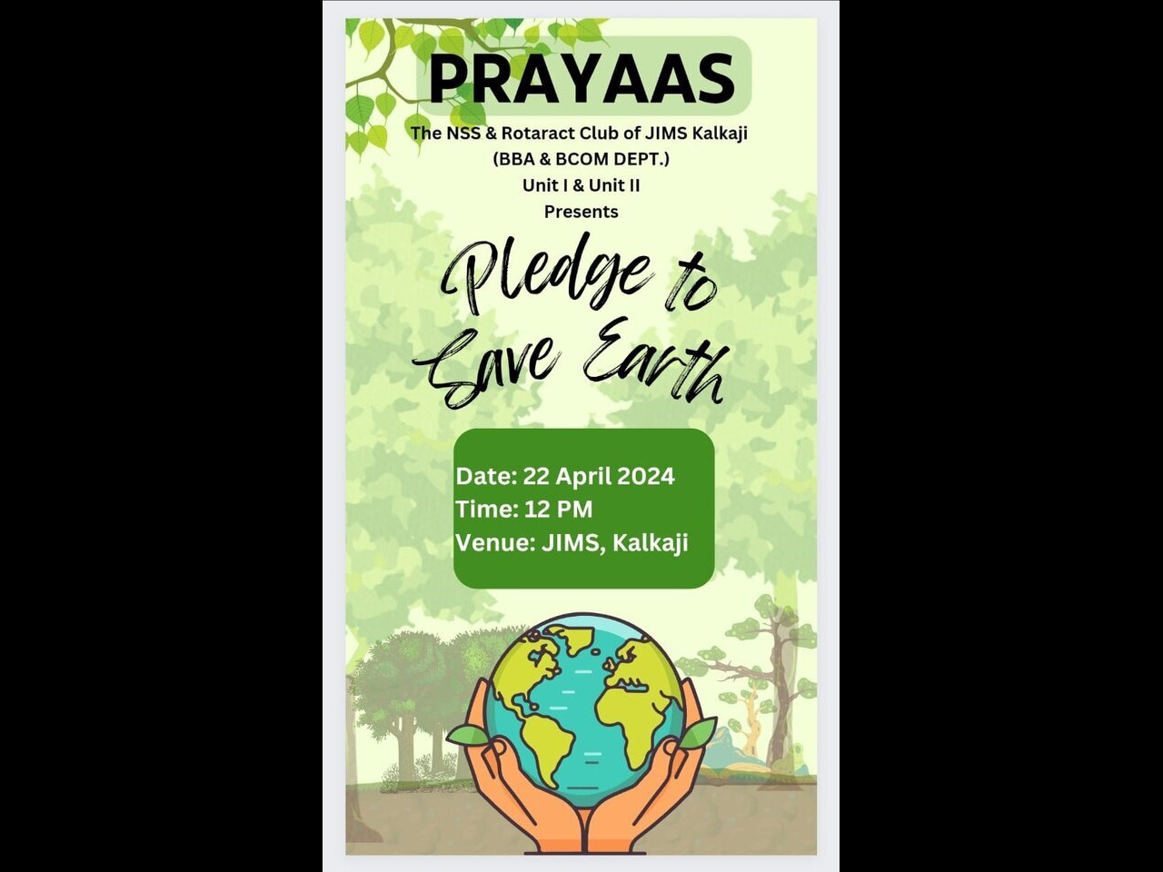 Prayaas, the NSS Club of JIMS Kalkaji, organized an inspiring Online Poster Making Competition on the occasion of World Earth Day on 22 April 2025. The event aimed to foster environmental consciousness, creativity, and a sense of social responsibility among students. Participants expressed their thoughts through vibrant posters, highlighting crucial issues like climate change, conservation, and sustainability. Each artwork carried powerful messages, inspiring viewers to reflect on their role in protecting the planet. Beyond creative expression, the competition instilled a deeper understanding of the urgent need for environmental action. Students realized that even small efforts can spark meaningful change and spread awareness across communities. The celebration of Earth Day was more than just an artistic exercise — it was a powerful reminder of our shared duty to care for the Earth, leaving participants motivated to champion a greener, more sustainable future. The competition deepened students' understanding of environmental issues, inspiring them to become creative advocates for sustainability and positive change. Students learned the power of art as a tool for awareness, realizing that even small creative actions can ignite big conversations about protecting our planet.