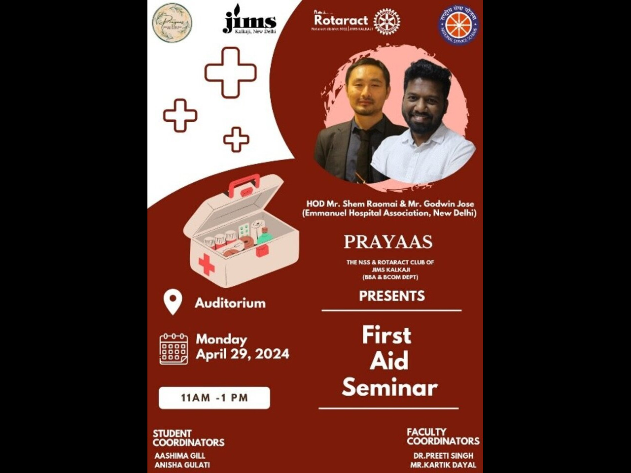 Road safety workshop was held on 20-09-2024. Prayaas the NSS club of JIMS Kalkaji, organized a road safety and first responder workshop in collaboration with Indian Road Safety Campaign (IRSC) and All India Institute of Medical Sciences (AIIMS). The event commenced with a diya-lighting ceremony led by Mr. Deepanshu Gupta, followed by his insightful talk on road safety and accident prevention, focusing on how responsible driving can reduce accidents. A team of doctors from AIIMS then conducted an informative session on the role of first responders, highlighting the importance of aiding accident victims. They demonstrated CPR techniques, explaining the process step-by-step, and involved students in hands-on practice, equipping them with essential life-saving skills for handling emergency situations effectively. Through this event, volunteers gained a deeper understanding of road safety measures, including the causes of road accidents, measures to prevent them and the significance of immediate assistance during accidents, and learned about the “Golden Hour” and its impact. Through the CPR demonstration, students acquired life-saving skills that could prove invaluable in emergency situations.