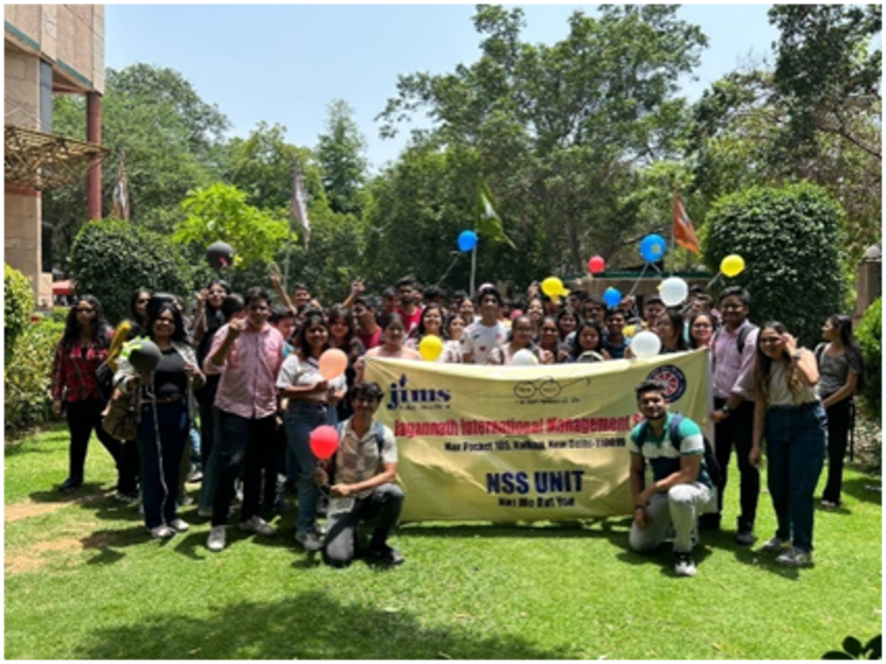 Prayaas, the NSS Club of JIMS Kalkaji, organized a Tree Plantation Drive at East Kidwai Nagar, Delhi on 26th july 2025. The event began with a brief orientation where volunteers were guided on the planting procedure and location allocations. With active participation and commitment, the volunteers successfully planted over 100 saplings in areas lacking greenery. From digging pits to watering and securing the saplings with, students worked diligently and collaboratively throughout the activity. The drive witnessed enthusiastic participation and strong teamwork. The presence and appreciation of local residents further boosted the morale of the volunteers and added significance to the cause. The initiative not only contributed to improving the green cover but also encouraged students to be environmentally responsible citizens. Students experienced hands-on environmental service and saw the direct impact of their efforts and gained awareness of the importance of tree plantation for sustainable development. The activity enhanced the coordination, teamwork, and sense of civic responsibility of the student volunteers.