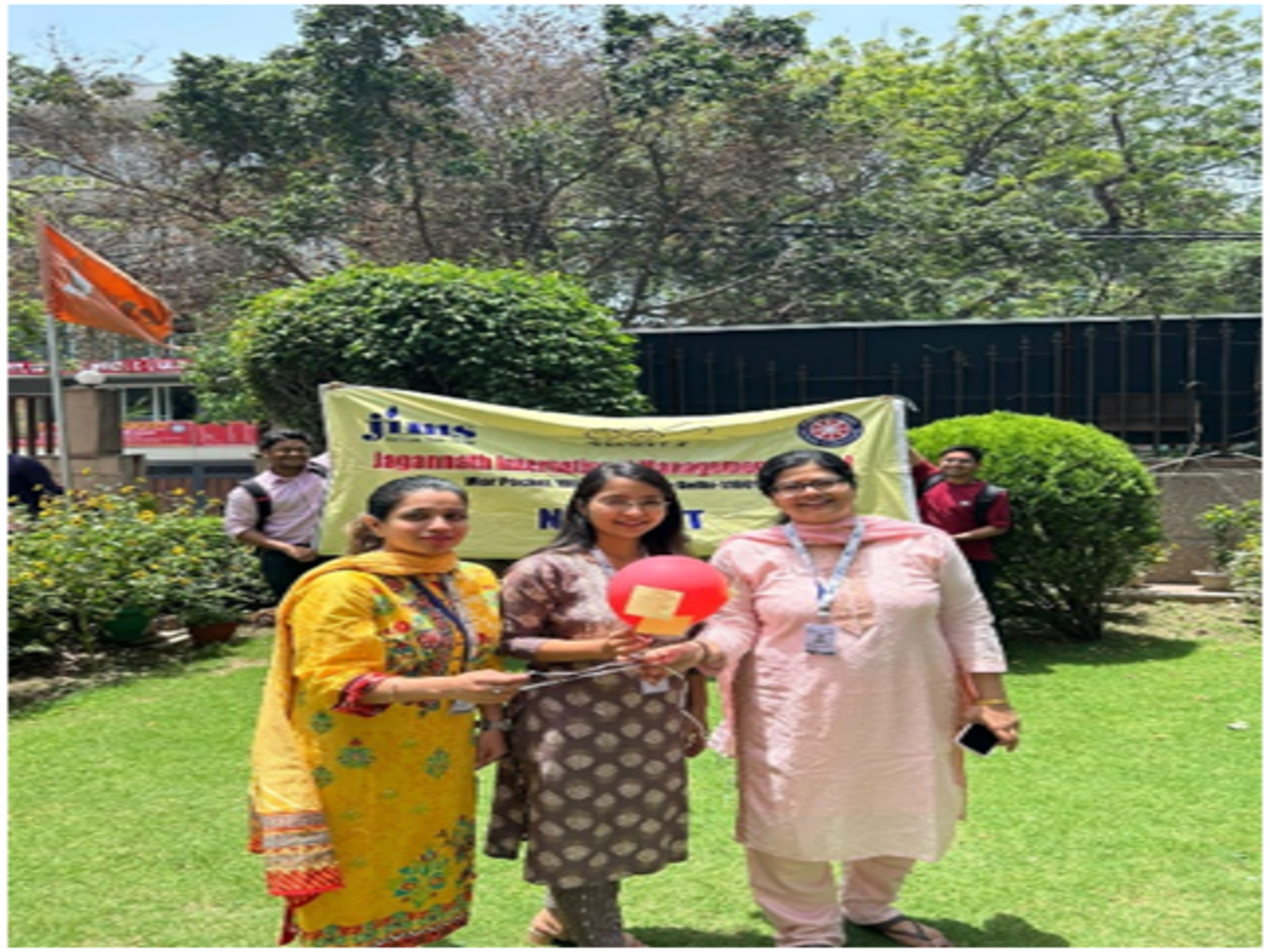 Prayaas, the NSS Club of JIMS Kalkaji, organised a Flag Hoisting Ceremony to mark the 79th Independence Day at JIMS Kalkaji on 14 August 2025. The campus was decorated with balloons, tricolour flags, and a handmade photo booth, while an artistic rangoli at the entrance enhanced the patriotic spirit.The highlight was the flag hoisting by the Honourable Director, followed by the National Anthem, which created an atmosphere of pride and respect. The event concluded with appreciation of the NSS volunteers, whose creativity and dedication made the celebration memorable. The celebration fostered a sense of national pride, unity, and respect for the sacrifices of freedom fighters. It enhanced the leadership, teamwork, and organisational skills of NSS volunteers while encouraging creativity through decorations and cultural activities.