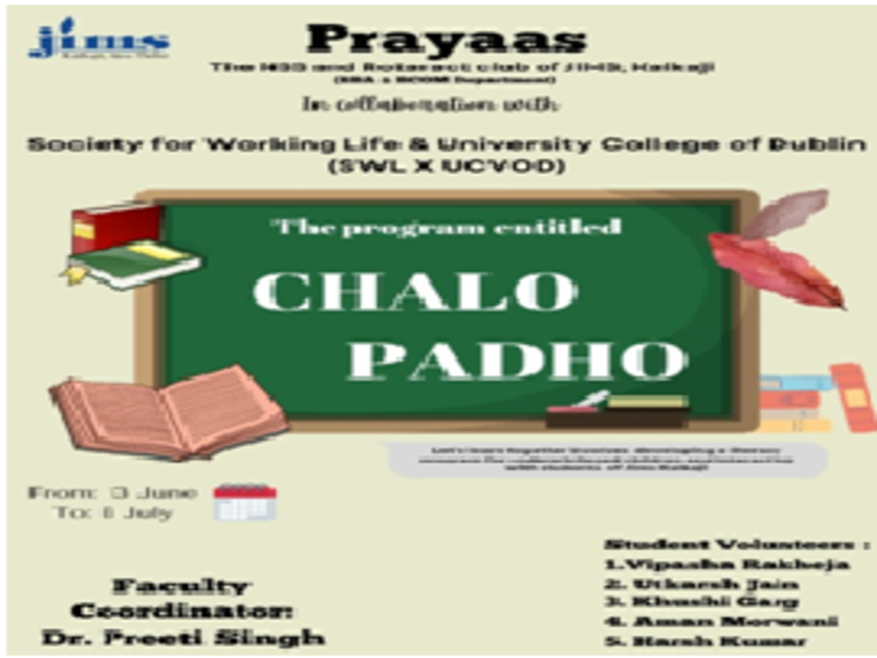 Prayaas- The NSS club of JIMS Kalkaji, took a meaningful step toward educational support by organizing a Stationery Donation Drive on 27 February 2025 in collaboration with Rotaract Club of JIMS Kalkaji at Yamuna Khadar, Mayur Vihar Phase 1. Understanding the challenges faced by children in underserved communities, we distributed over 50 sets of school bags and stationery items, including pencil boxes, colors, notebooks, and other essentials. We were honored to have esteemed guests from the Lalmani Foundation and United Nation Welfare Foundation, whose support and encouragement added great value to our initiative. Beyond distributing resources, the event was enriched with interactive activities, where the children showcased their talents through poetry recitations, songs, and dance performances. Their enthusiasm and gratitude made the event truly heartwarming. To ensure a holistic experience, refreshments were also provided, making the day enjoyable and memorable for the young learners.