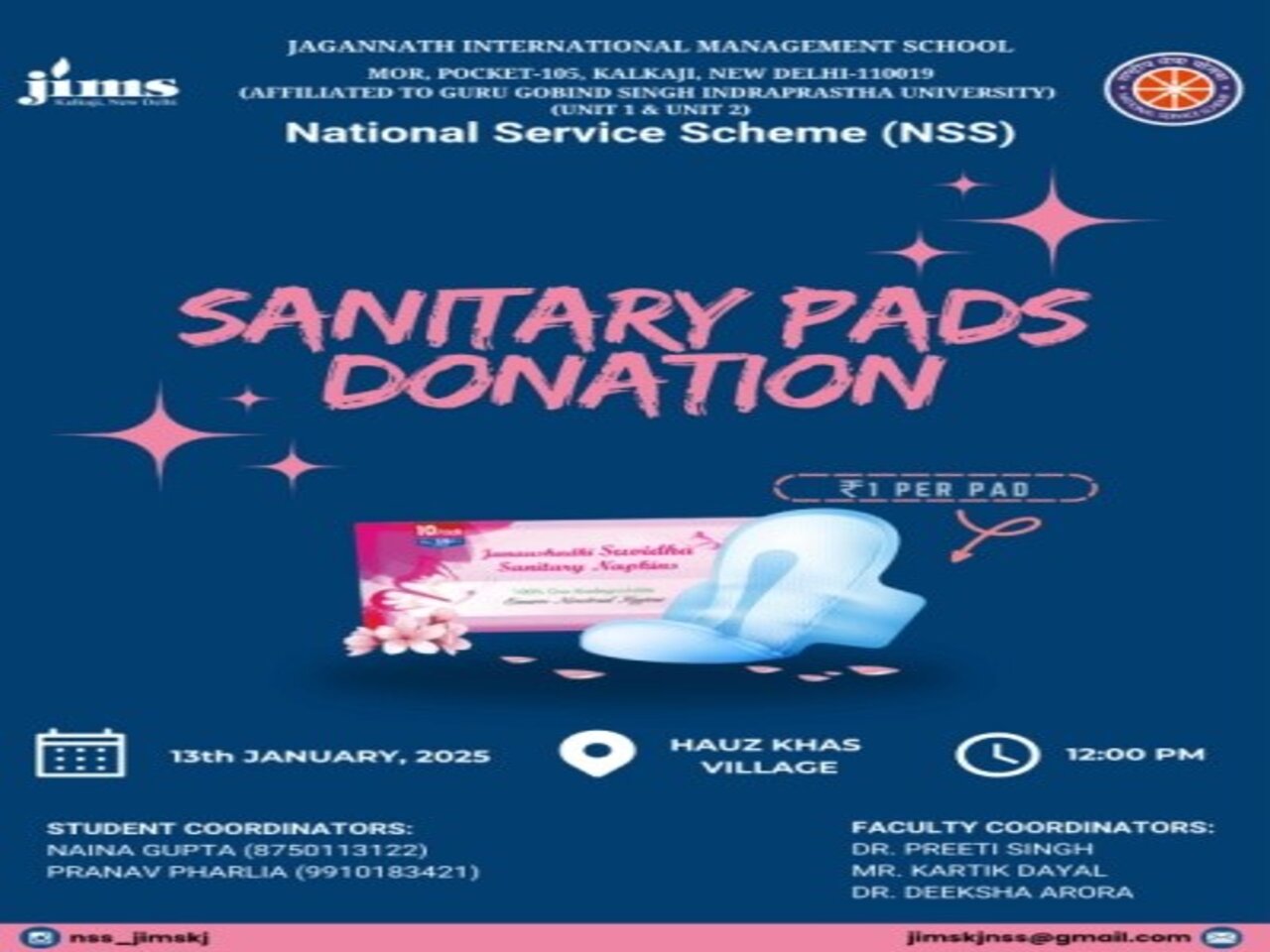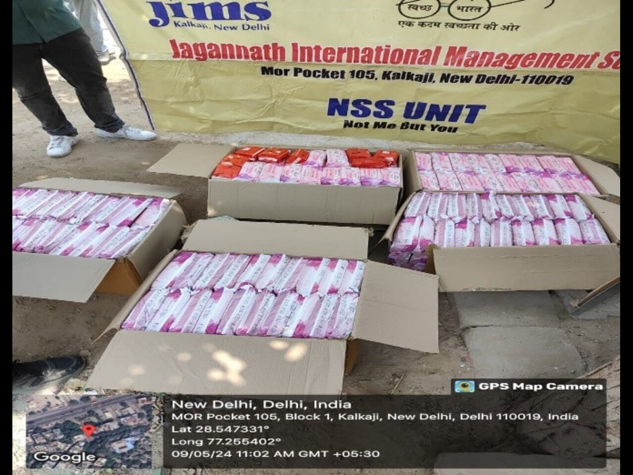 Prayaas, the NSS club of JIMS Kalkaji, had organized a sanitary pad donation and menstrual hygiene awareness drive at Hauz Khas Village celebrating the occasion of National Youth Day on 13th jan 2025. The event focused on addressing the lack of access to affordable menstrual hygiene products in under-served communities. Volunteers distributed 5,000 sanitary pads to over 250 women, providing each with a supply sufficient for approximately two months. Alongside the distribution, an interactive awareness session was conducted to educate women on proper usage and disposal of sanitary pads, dispel myths and taboos surrounding menstruation, and highlight the importance of menstrual hygiene for overall health and dignity. The event fostered open dialogue, encouraged community participation, and aimed to empower women by providing them with essential resources and knowledge. Volunteers gained firsthand insight into the difficulties faced by women in under-served communities, especially regarding affordability and accessibility of menstrual hygiene products.