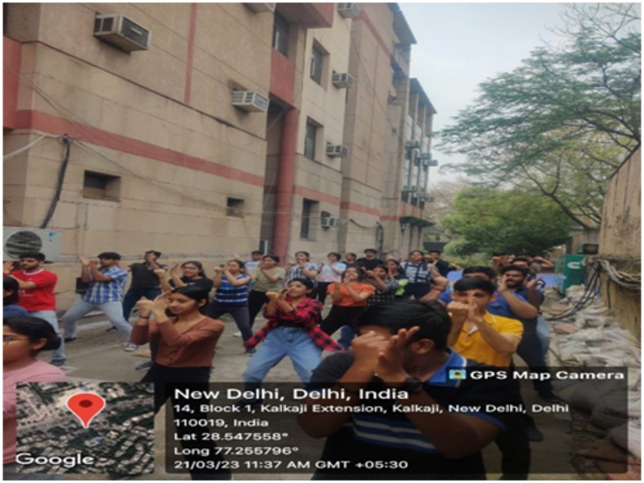 NSS club of JIMS Kalkaji organized a Yoga session on 18th September 2021. Volunteers along with the children (School children & adolescent girls) performed around 15 asanas. Benefits and importance of asanas was communicated.