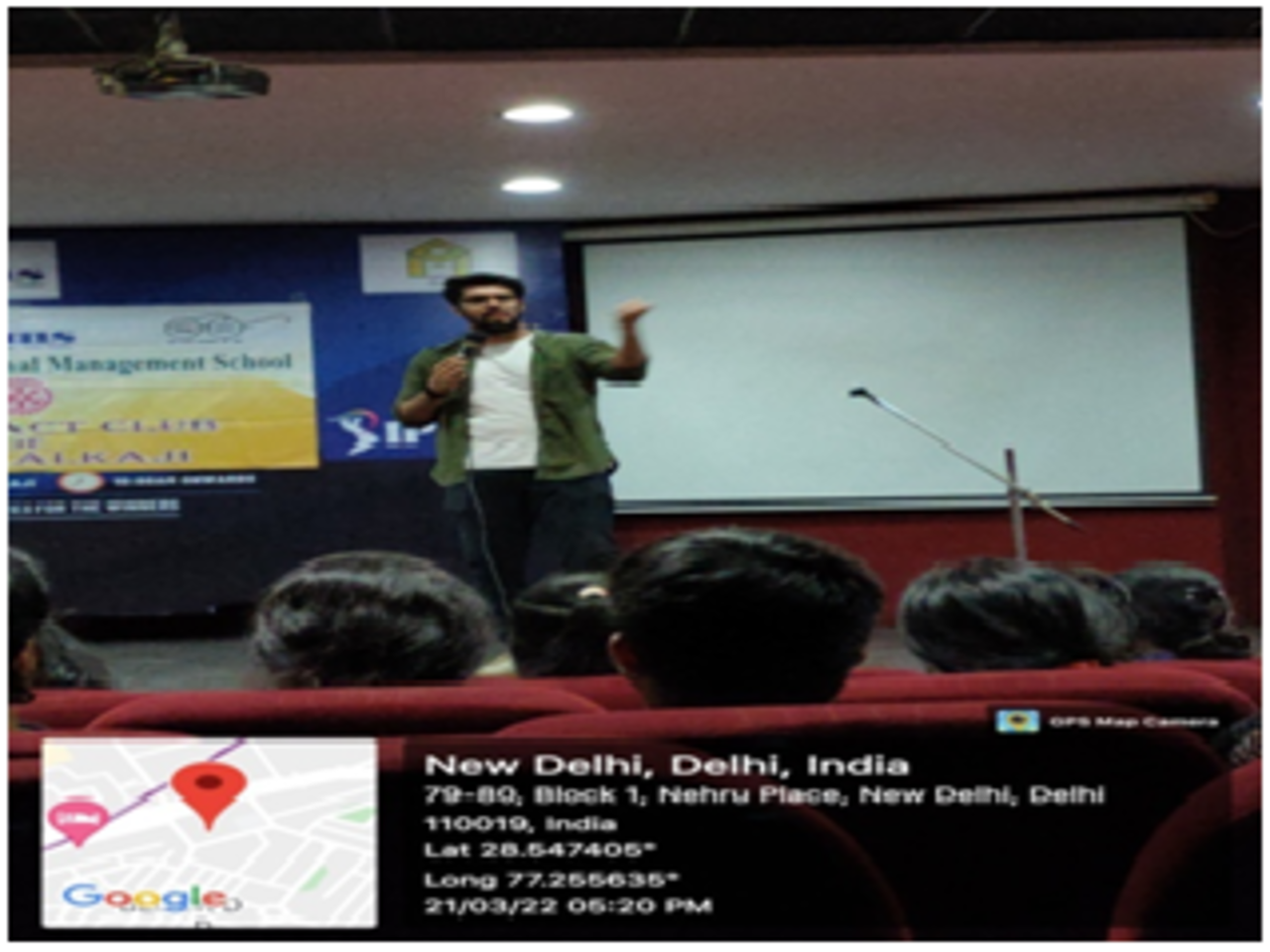 on 8th march 2021, On the occasion of International Women’s Day, a webinar was organised by JIMS KALKAJI for the students of BBA Ms. Sonia Bakshi, an entrepreneur, was invited to give the students a guest lecture in order to encourage and empower the women of our college by sharing her journey of creating her own gym brand “DTF Fitness Studios”. She also elucidated about the problems of physical and mental stress faced by the young generation and shared tips and exercises to combat the same.