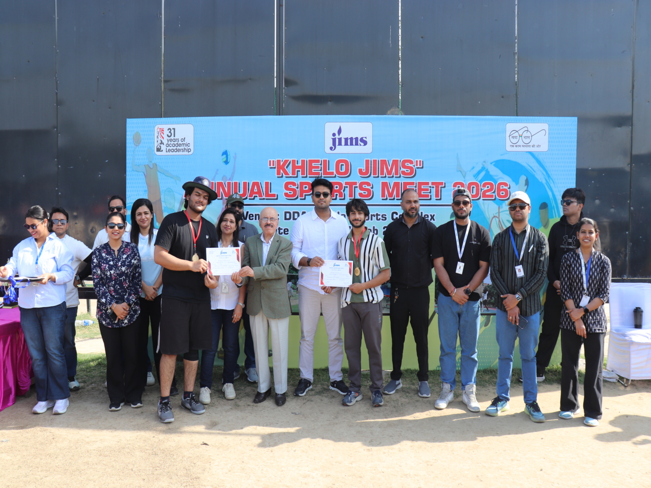 Khelo JIMS- Annual Sports Meet 2026, the Inter- JIMS Sports Tournament, was successfully organized on 26–27 February 2026 at Netaji Subhash Sports Complex, Jasola. The two-day sporting event witnessed enthusiastic participation from students across all JIMS campuses, showcasing exceptional talent, teamwork, and competitive spirit. Among all participating campuses, JIMS Kalkaji delivered an outstanding performance and emerged as one of the top performers in the tournament. The campus secured several top positions across multiple sporting events, demonstrating remarkable dedication and skill.